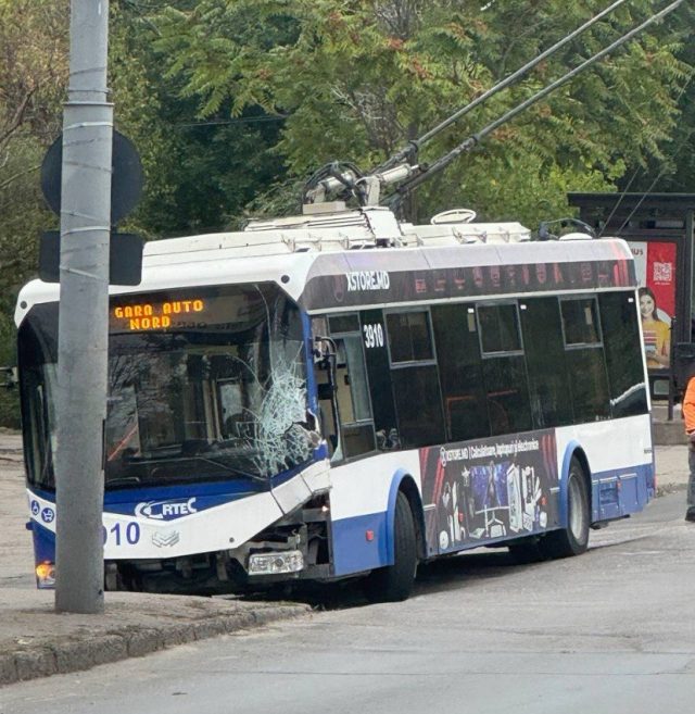 Un troleibuz care circula pe ruta nr. 9 în Chișinău a fost implicat într-un accident rutier cu un camion, în dimineața zilei de 3 octombrie, în jurul orei 6:40.