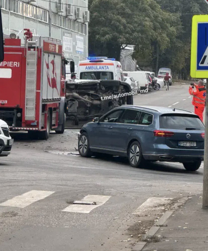Un accident rutier grav a avut loc în această dimineață pe strada Otovasca din Capitală. Potrivit primelor informații, o mașină s-a răsturnat după ce s-a ciocnit violent cu un autoturism marca Volkswagen.