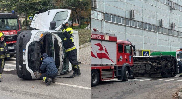 Un accident rutier grav a avut loc în această dimineață pe strada Otovasca din Capitală. Potrivit primelor informații, o mașină s-a răsturnat după ce s-a ciocnit violent cu un autoturism marca Volkswagen.