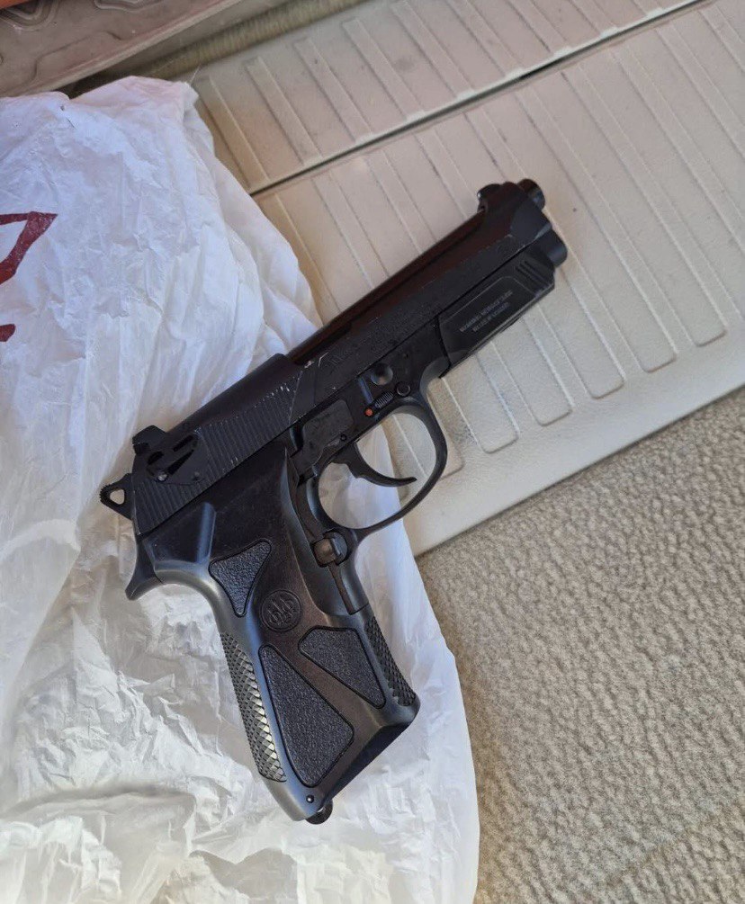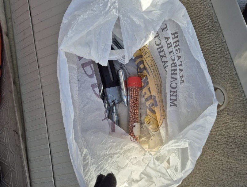 Contrar celor afirmate, verificările minuțioase au scos la iveală faptul că, în compartimentul pentru scule, erau ascunse un pistol pneumatic BERETTA Gardone V.T., calibru 4,5 mm, șase capsule CO₂ de 12 grame și bile pentru armă pneumatică.