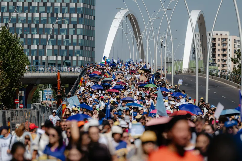 Astăzi, 8 septembrie 2025, în premieră în ultimii 35 de ani, prima zi de școală s-a desfășurat, în multe școli, fără festivități. Peste 10.000 de cadre didactice din toată țara au protestat, timp de aproximativ șase ore, mai întâi în Piața Victoriei, apoi la Palatul Cotroceni, unde ajuns în marș, traversând Podul Basarab, le fel ca în 2023. Liderii sindicali s-au întâlnit cu Nicușor Dan, ieșind nemulțumiți de la discuții: „Lucrurile nu se vor rezolva, protestele vor continua, ceea ce nu este bine”.