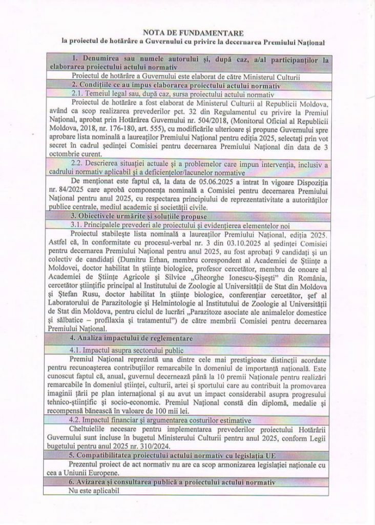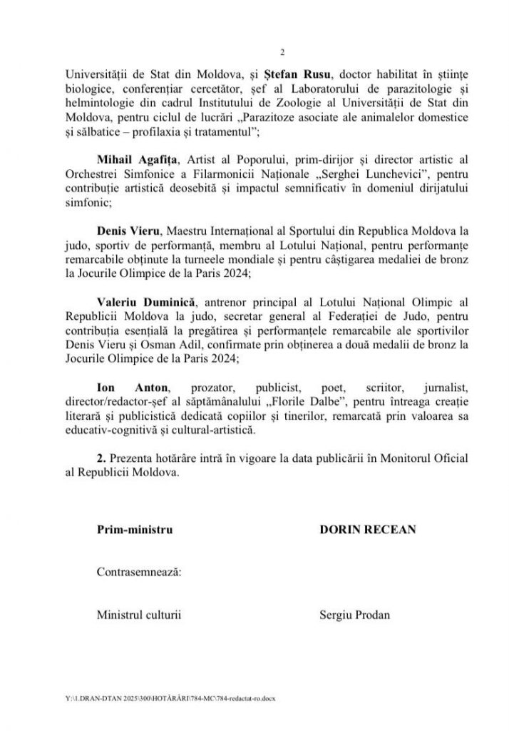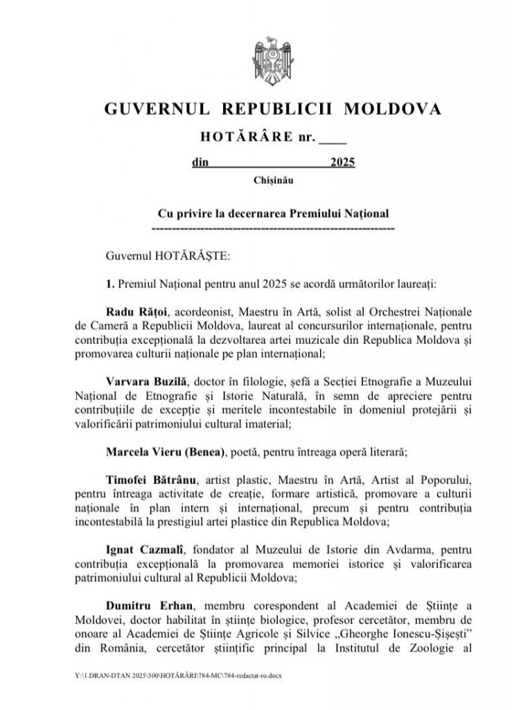Guvernul Republicii Moldova a anunțat astăzi lista celor 11 câștigători ai Premiului Național pentru anul 2025, recunoscând astfel meritele unor profesioniști de excepție în domeniile artă, știință, literatură, cultură și sport. Laureații vor fi premiați pentru contribuțiile lor valoroase în promovarea și dezvoltarea culturii, științei și sportului din țară.