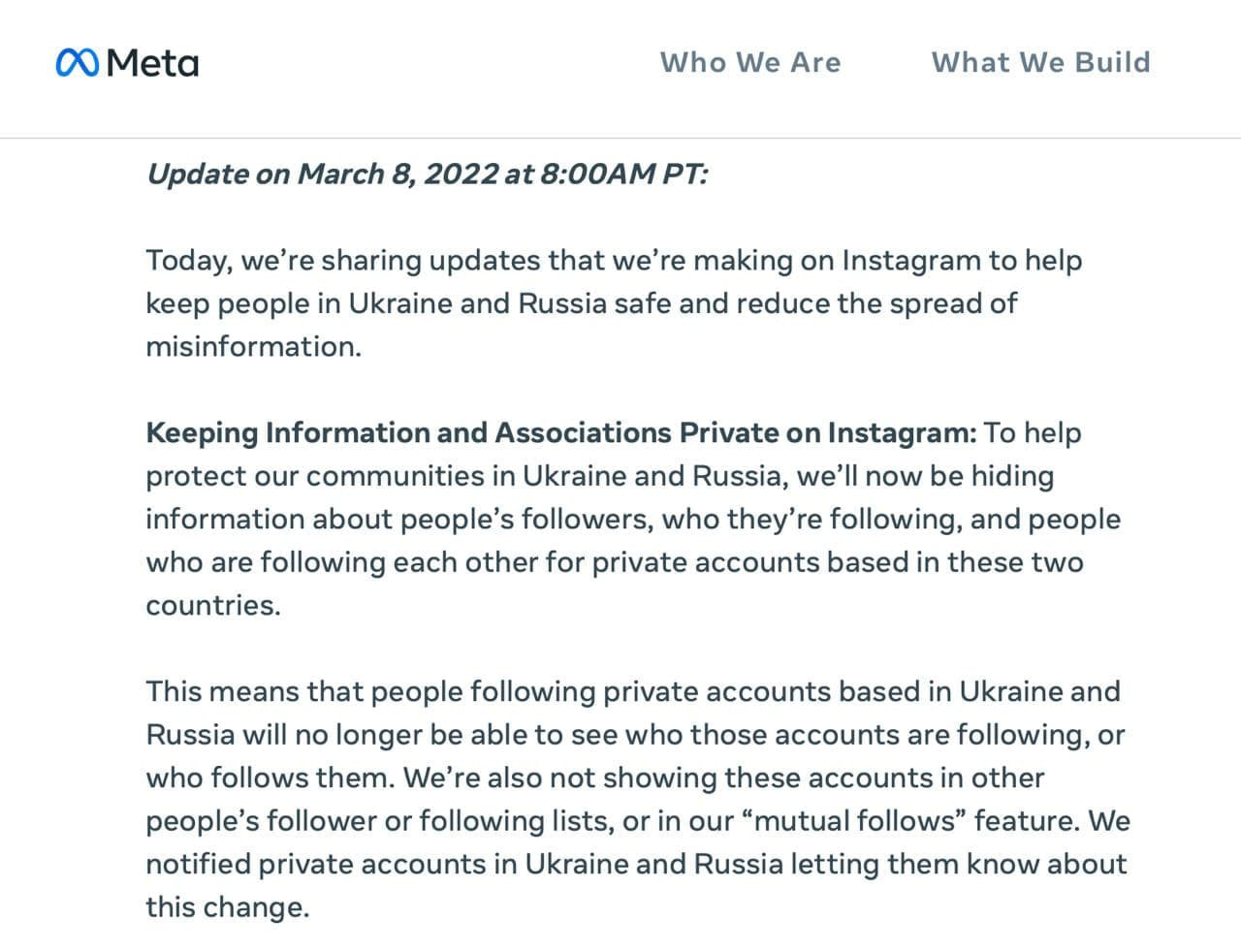 Instagram nu va mai afișa abonamentele și abonații utilizatorilor din Rusia și Ucraina pentru a proteja comunitățile din aceste țări.
