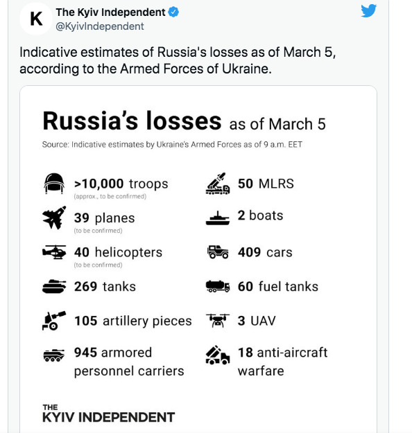 Acasă Extern Kievul prezintă lista pierderilor pe care le-ar fi suferit Rusia până acum