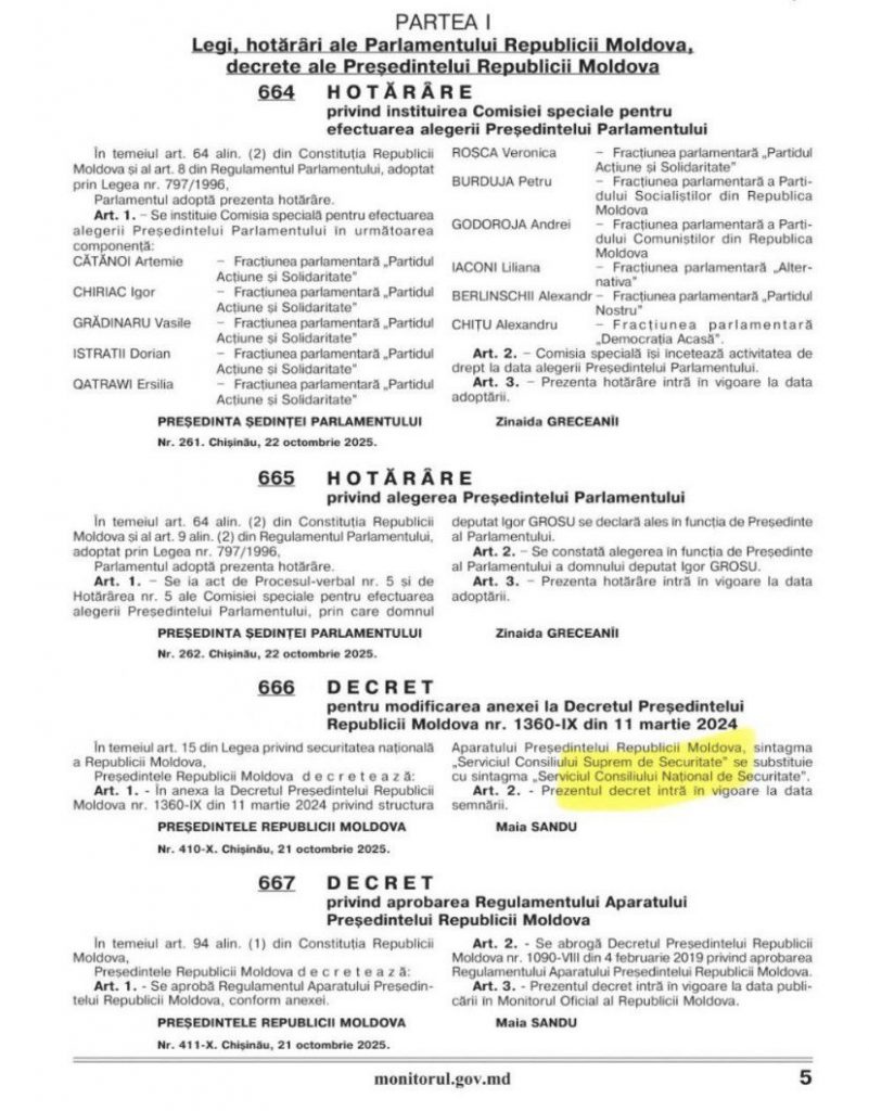 Președinta Maia Sandu a semnat la 21 octombrie 2025 Decretul nr. 410-X prin care „Serviciul Consiliului Suprem de Securitate” a fost redenumit și reorganizat sub denumirea de „Serviciul Consiliului Național de Securitate” (SCNS).