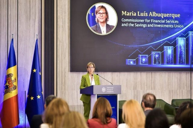 Comisara europeană pentru Servicii Financiare și Uniunea Economiilor și a Investițiilor, Maria Luís Albuquerque, a participat astăzi la conferința „Finanțe și creștere economică: lecții pentru parcursul european al Republicii Moldova”.