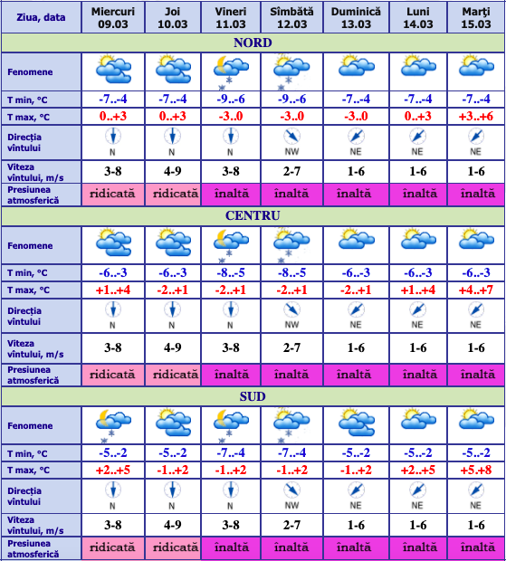 În raioanele de nord valorile termice vor arăta -7…-4 grade la noapte, iar ziua 0…+3 grade.