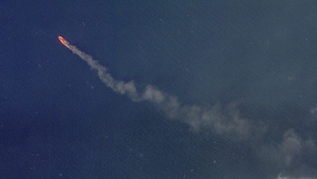 Planet Labs PBC a făcut publică o nouă imagine din satelit care arată un val mare de fum negru care provine de la petrolierul care plutește la aproximativ 32 de kilometri (20 de mile) la est de orașul ucrainean Odesa.