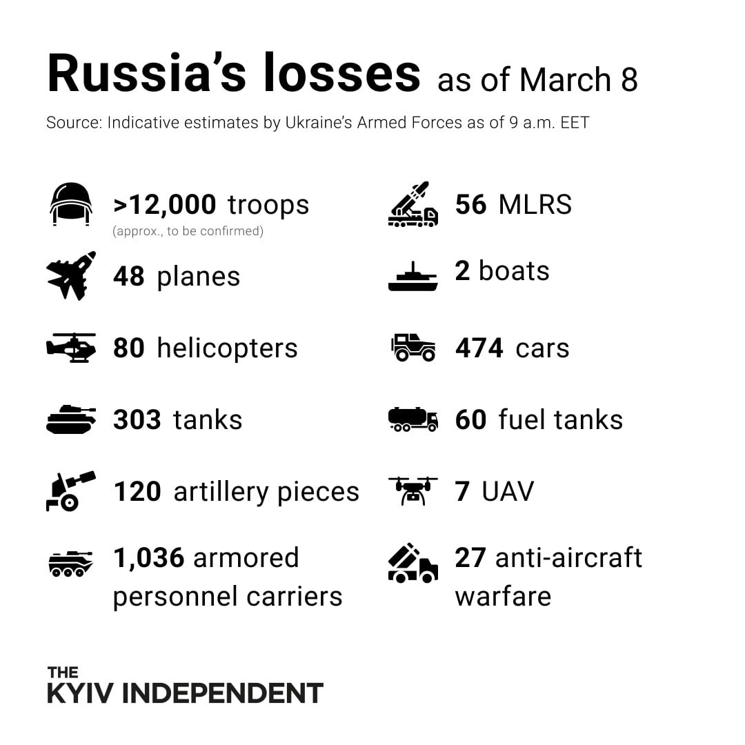 Aproape 12.000 de soldați ruși ar fi murit, ar fi fost răniți sau capturați în primele 12 zile ale războiului din Ucraina, anunță marți armata Ucrainei.
