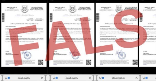 Serviciul Fiscal de Stat (SFS) avertizează că unii contribuabili au primit recent notificări false privind plata impozitului pe venit. Documentele sunt falsificate, semnate ilegal cu numele directoarei Olga Golban și transmise prin e-mail-uri provenind din Federația Rusă.