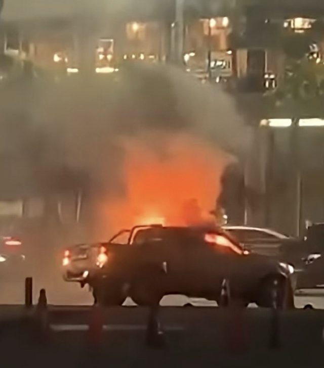 Autorităţile au publicat imagini de supraveghere de la camerele de trafic care arată vehiculul luând foc înainte de explozie, cu flăcări mari vizibile ieşind din maşină.